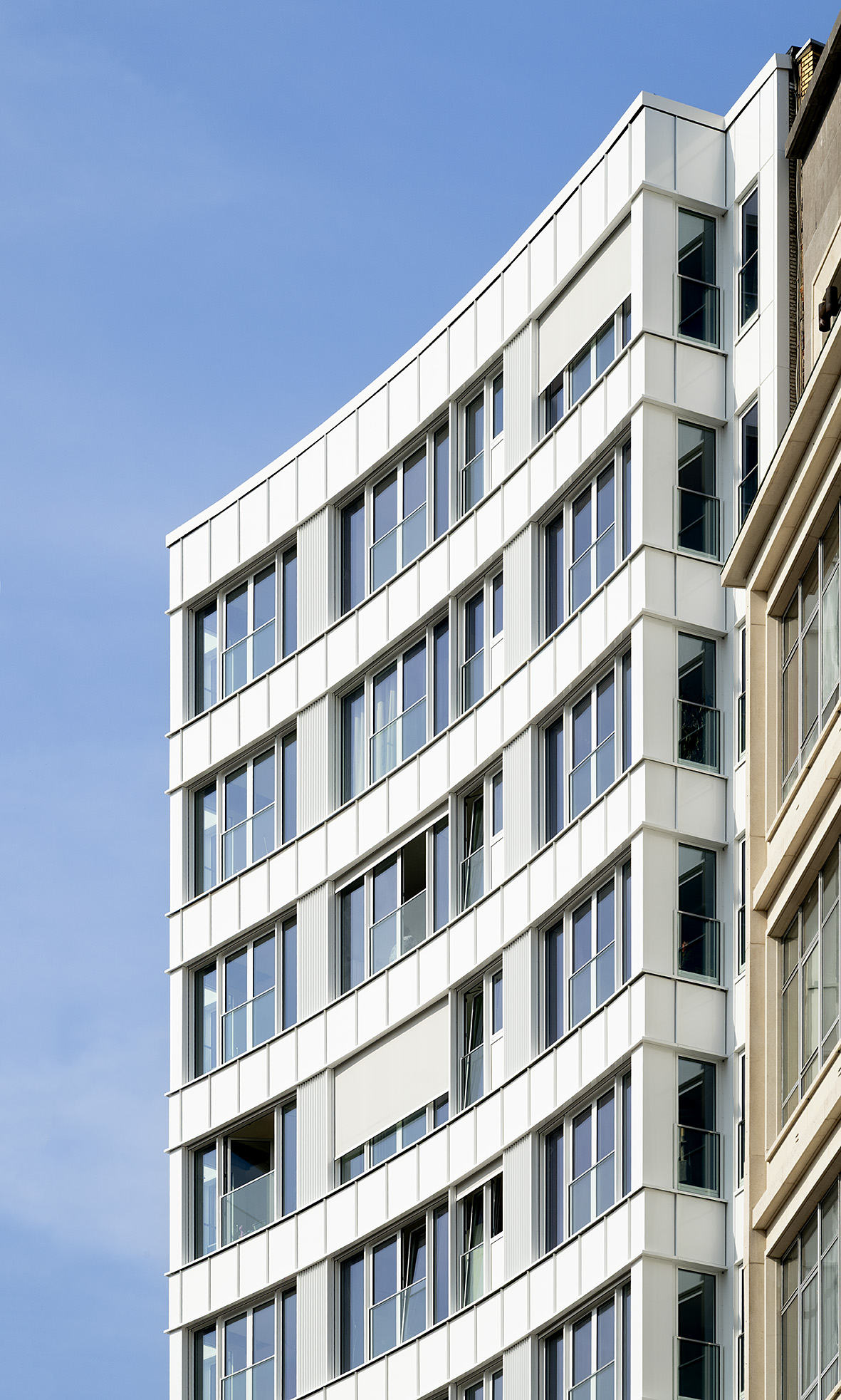La teinte blanche unifie l’ensemble et apporte une image plus claire, actuelle et durable, renforçant la présence du bâtiment dans le paysage urbain.